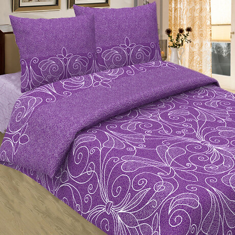 КПБ 'Традиция' 1,5 спальный, бязь, 100 % хлопок, пл. 125 гр./кв.м. 'Жемчужина (фиолетовая)'