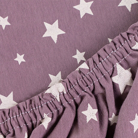 Трикотажная простыня на резинке 200х200х20, 100% хлопок, пл. 145 гр./кв. м., 'Звёзды серо-сиреневый'