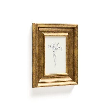 Эта картина представляет собой напечатанную ботаническую иллюстрацию, выполненную карандашом, которая передает спокойствие и вневременную элегантность. Изящный контур цветка выделяется на нейтральном фоне, приглашая насладиться мелкими деталями. Деревянная рама, окрашенная в античный золотой оттенок, воссоздает эстетику середины века. Идеальное украшение, которое добавит изысканности гостиным, спальням или коридорам, сочетая искусство и дизайн в едином декоративном элементе.