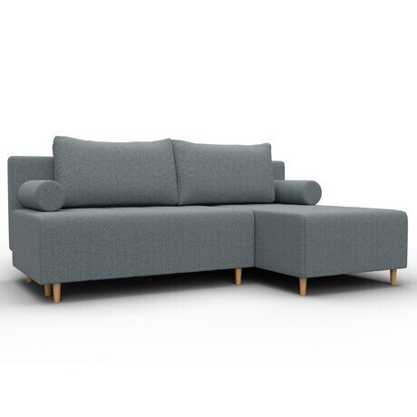 Лига-102 – угловой диван со спальным местом без подлокотников. Спинка дополнена двумя мягкими подушками. Уголовой диван может быть собран с углом с правой или левой стороны. Для хранения белья в конструкции предусмотрен ящик.