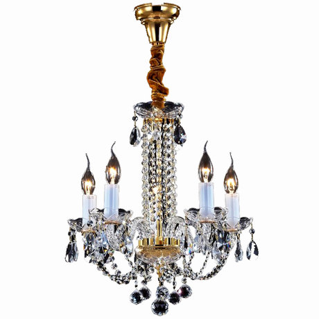 Назначение светильника: для комнаты, Стиль светильника: классика, Материал светильника: металл, Ширина: 480, Диаметр: 480, Высота: 500, Количество ламп: 5 шт, Тип лампы: энергосберегающая, Мощность: 15 Вт, Патрон: Е14, Цвет арматуры: золото