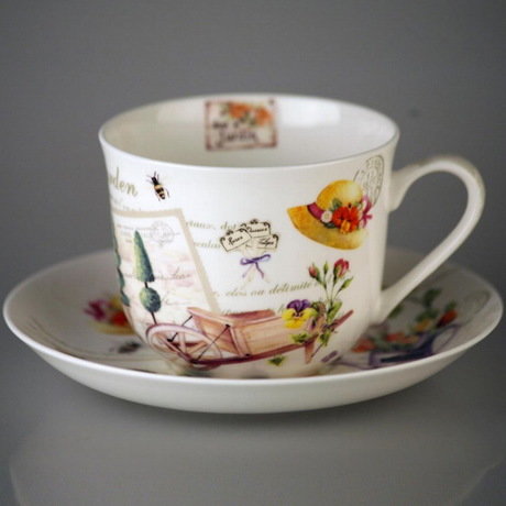 Большая чашка с блюдцем Сад